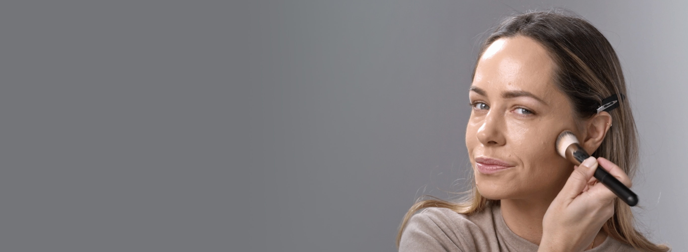 Start with a hydrating, radiance-boosting primer like Futurist Water Glow Primer . This refreshing gel-creme primer instantly triples skin’s moisture for a visibly healthy look. Follow with a hydrating foundation. Use Futurist Hydra Rescue Foundation SPF 45 for buildable medium-to-full coverage and a 12-hour radiant glow. If you prefer less coverage with the similar radiance and skincaring benefits, try Futurist SkinTint SPF 20.