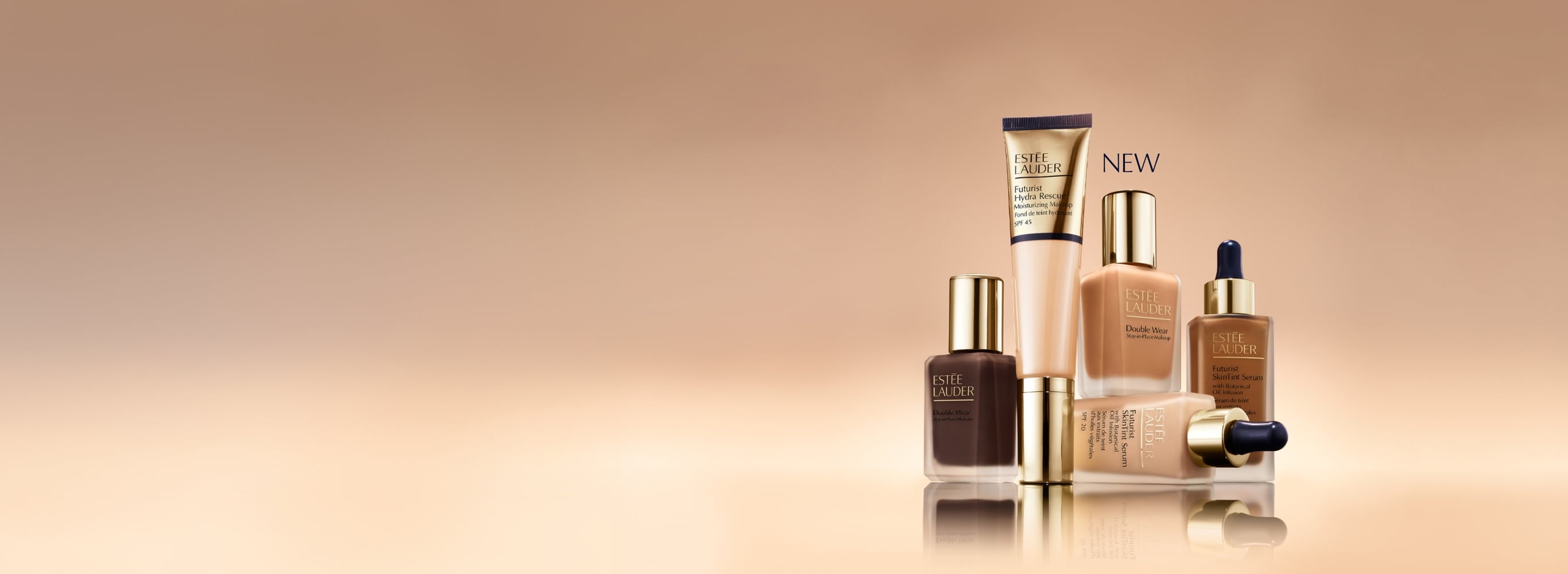 If you’re looking for a full-of-life, natural matte finish and all-day wear, choose formulas from our high-performance Double Wear Makeup Collection. If you prefer a natural, radiant finish and skin-caring makeup, you’ll love the Futurist Makeup Collection.