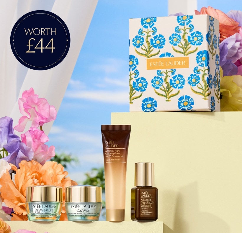 2Offer is available exclusively at esteelauder.co.uk until 11.59pm on 15/03/2026 or while stock lasts. Offer is for a free 4-piece gift when you spend £75+. Gift contains an Advanced Night Cleansing Gelée (15ml), a DayWear Multi Protection Anti Oxidant 24H-Moisture Creme SPF15 (7ml), an Advanced Night Repair Synchronized Multi Recovery Complex (7ml), and a DayWear Eye Cooling Gel-Creme (5ml). Spend £90+ and you will also receive a full-size DayWear Multi-Protection Anti-Oxidant Sheer Tint Release Moisturizer SPF 15 (30ml). Enter offer code "WITHLOVE” at checkout to qualify. Offer is limited to one use per customer. Purchase requirement excludes gift cards, gift sets, custom gifts, trial-sizes, purse sprays and pre-discounted products. Offer not valid in conjunction with any other promotional offer including Estée E-List Loyalty Program tier benefits.
