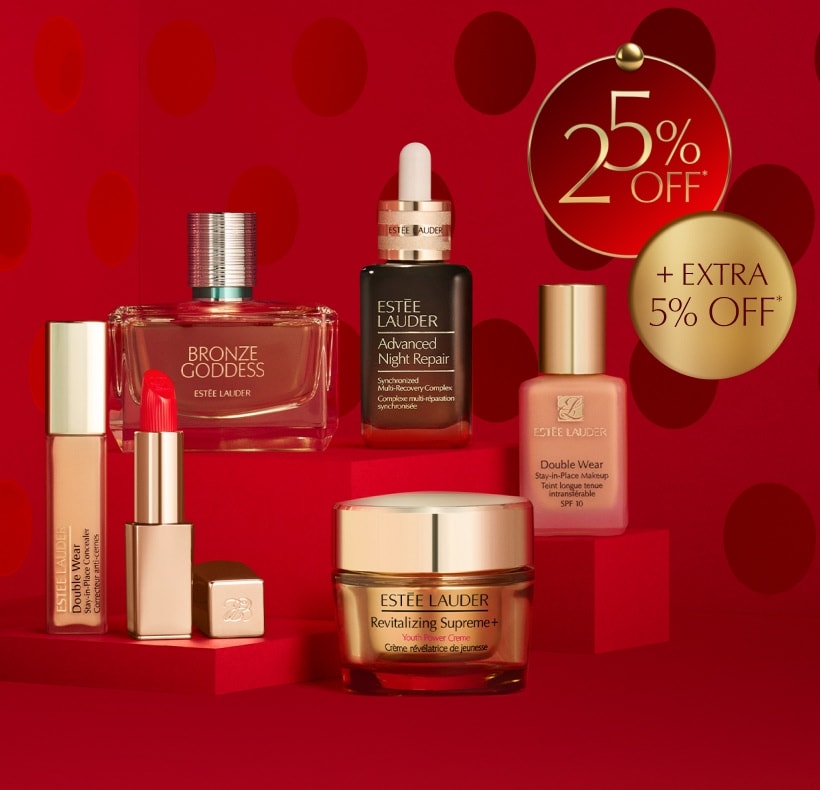 1Offer available exclusively at esteelauder.co.uk until 11.59pm on 04/12/2025 or while stock lasts. Offer is for 25% off qualifying items in your order. Offer automatically applied at checkout. Offer is limited to one use per customer. Discount and qualifying spend not applicable on gift cards, travel sizes, engraving fees, delivery charges, the fragrance Legacy Collection, any products with a 'NEW' badge. Offer not valid in conjunction with any other promotional offer including Estée E-List Loyalty Program tier benefits.