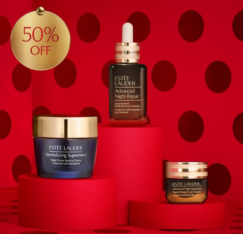 5Offer is available until 11.59pm on 30/11/2025 or while stock lasts. Offer is for 50% off the “Beauty of the Night Skincare Gift Set”. Full price was £100.00. No offer code needed. Offer is limited to one per customer. Discount not valid in conjunction with any other promotional offer including Estée E-List Loyalty Program tier benefits or as a qualifying purchase for our Blockbuster Gift Set.